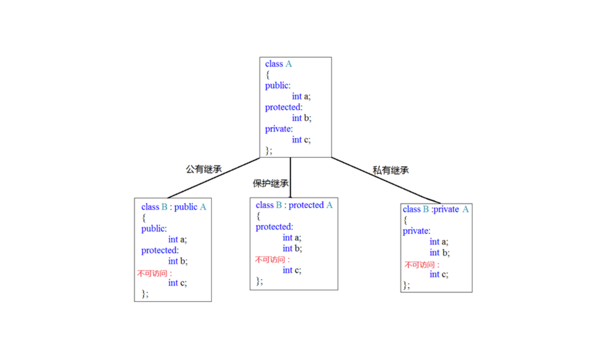 如果是公有继承,那么就是照抄父类。 如果是保护继承,那么父类里继承过来的都是保护权限,如果是私有继承,那么父类继承过来的都是私有权限。