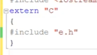 但是如果在c.h头文件声明加上关机键字则不行。在c.h中加上extern关键字,c++.cpp也要包含这个c.h,c.c也包含同一个头文件。但是C语言中是没有extern这个写法的。