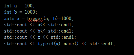 auto bigger(int& a, int &b)->decltype(a > b ? a : b)