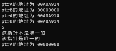 std::cout << "ptrA的地址为 " << ptrA << std::endl;
