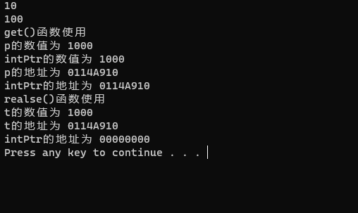 std::cout << "intPtr1的地址为 " << intPtr1 << std::endl;